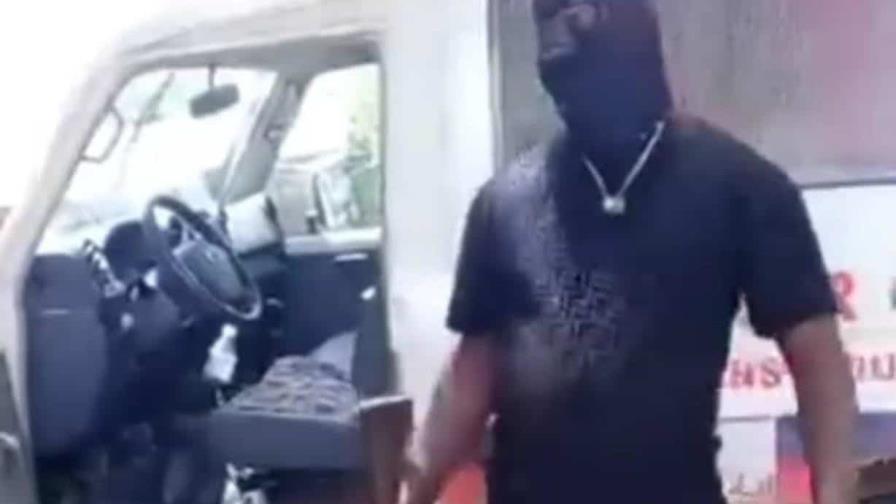 Un pandillero posa en una fotografía junto a la ambulancia secuestrada en Artibonito