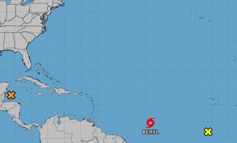 Al momento de emitir su segundo boletín de advertencia sobre el referido fenómeno atmosférico, el NHC afirmó que Beryl se encuentra a unos 1785 kilómetros de Barbados, moviéndose a 30 kilómetros por hora y con vientos máximos sostenidos que alcanzan los 65 kilómetros por hora.