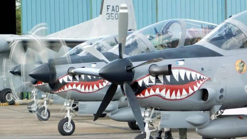 Los aviones de ataque y combate son los Super Tucano que cuentan con ametralladoras, bombas, visión nocturna entre otras especificaciones
