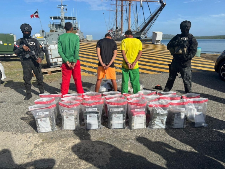 La Dirección Nacional de Control de Drogas (DNCD) atrapó a tres venezolanos en alta mar a bordo de una lancha rápida cuando intentaron introducir a territorio dominicano una importante cantidad de presuntas sustancias controladas, por las costas de Villa Sombrero, municipio de Baní, provincia Peravia.