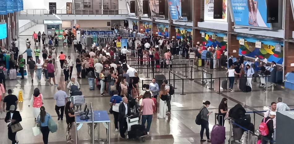 Desde las primeras horas de la mañana, hubo una gran afluencia de pasajeros frente a los mostradores de las líneas aéreas, a la espera de que se resolviera el problema que paralizó las operaciones.