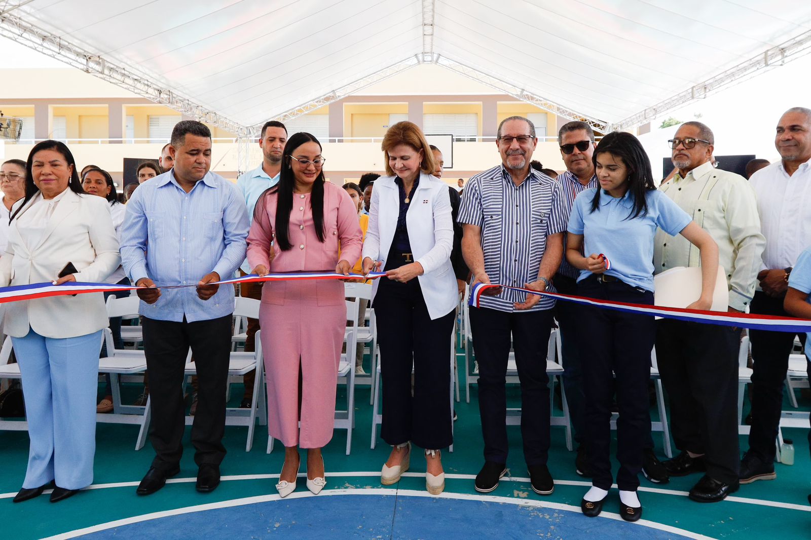 Valverde, RD. – "Como profesores, vamos a tratar de que antes de que termine un año escolar, hacernos autoevaluación nosotros a través de los niños, a través de ver si están avanzando, a través de ver si están aprendiendo lo que realmente les toca aprender y para lo que me han contratado y dedico mi corazón, mi alma y esfuerzos", así se expresó la vicepresidenta Raquel Peña durante la inauguración del nuevo liceo Prof. Simón Rafael Morón Quiñones, en Valverde Mao.