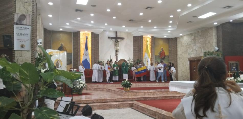 “El Episcopado Dominicano nos unimos en oración por Venezuela, un país hermano que queremos bastante y le pedimos al Señor que derrame su gracia sobre ese pueblo para que le dé fortaleza, que no se desanime, sino que sigan luchando por su país y la defensa de la democracia”, manifestó el vicario de la Iglesia San Antonio de Padua, Ronald De La Cruz al oficializar la misa a la que acudieron venezolanos con banderas en las manos, lazos y otras prendas en alusivas a su país de origen.