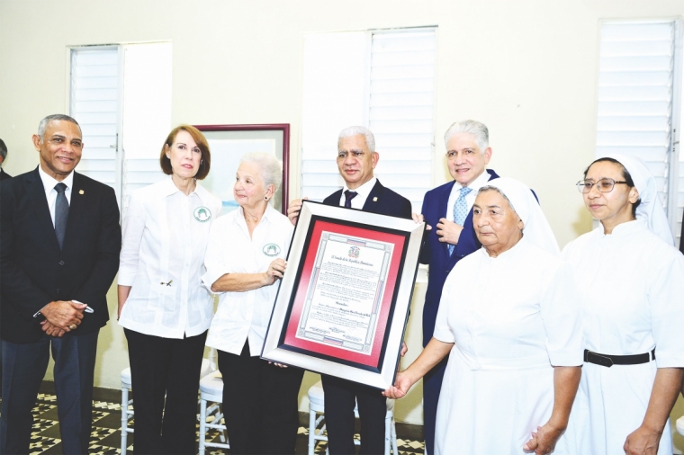 Luego, acompañado del senador Franklin Romero y el senador Eduardo Estrella, De los Santos entregó el reconocimiento a la Sociedad San Vicente de Paúl, que fue recibido por Eurides Lajam de Toribio, Teresita Quesada de Pastoriza y las hermanas Dominicas de la Presentación del Señor.