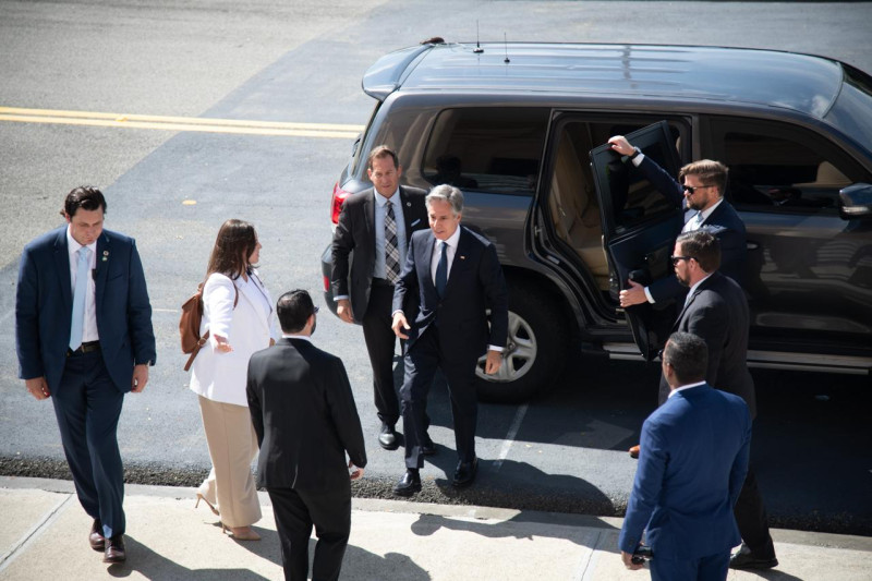 Tras un breve saludo e intercambio de palabras, Blinken, Paliza y otros funcionarios, tanto dominicanos con estadounidenses, ingresaron al edificio del Palacio Nacional para iniciar la reunión con el presidente, Luis Abinader.