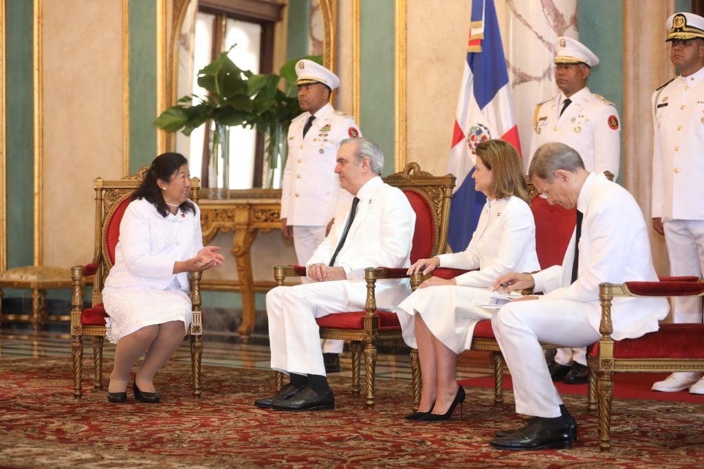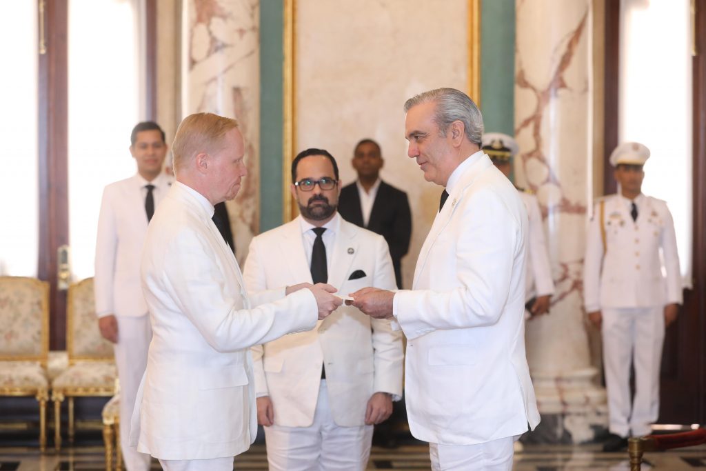 Santo Domingo.- El presidente Luis Abinader, junto con la vicepresidenta Raquel Peña, recibió este miércoles las cartas credenciales de siete nuevos embajadores.