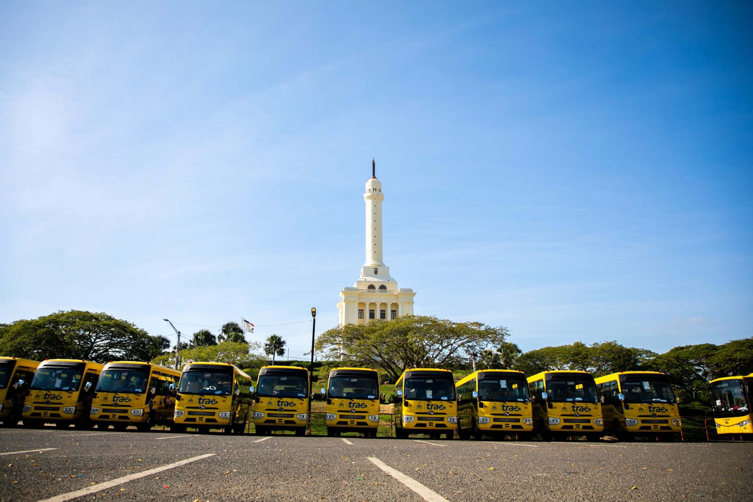 Santiago, RD. – Desde uno de los 150 autobuses escolares que se entregaron formalmente este domingo en Santiago, la vicepresidenta de la República, Raquel Peña, dejó en funcionamiento el Sistema Nacional de Transporte Estudiantil (TRAE) para Santiago.