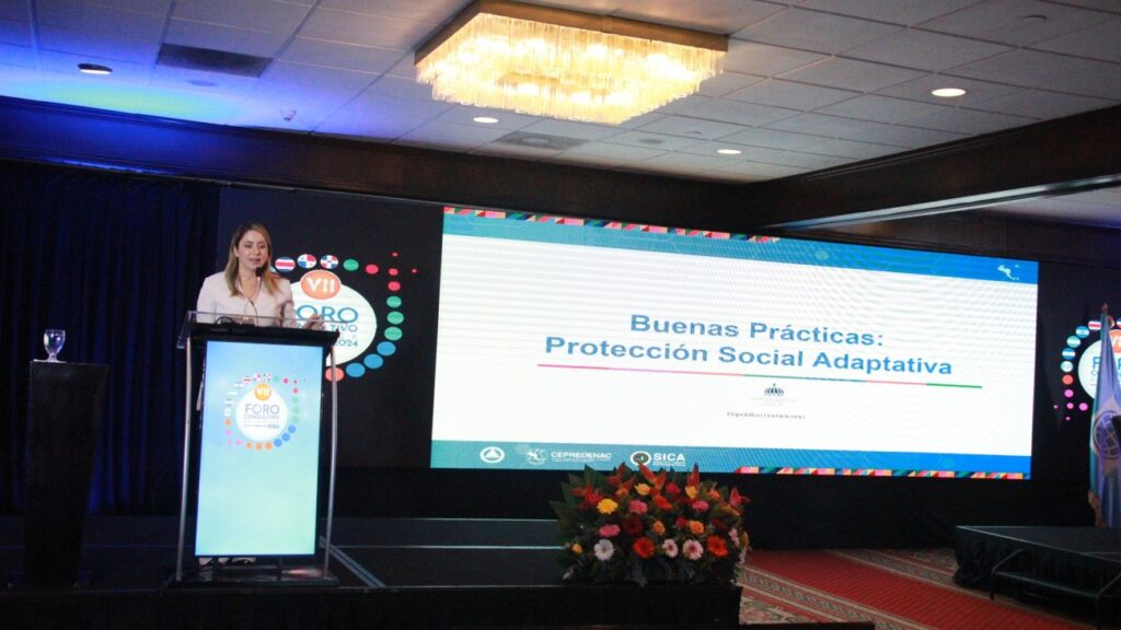 Durante una ponencia en el VII Foro Consultivo Regional de la Política Centroamericana de Gestión Integral de Riesgo (PCGIR), la directora general de Supérate, Gloria Reyes, afirmó que con la implementación del sistema de Protección Social Adaptativa, el Gobierno dominicano ha podido responder rápida y eficientemente a la población ante crisis provocadas por fenómenos climáticos y sociales.