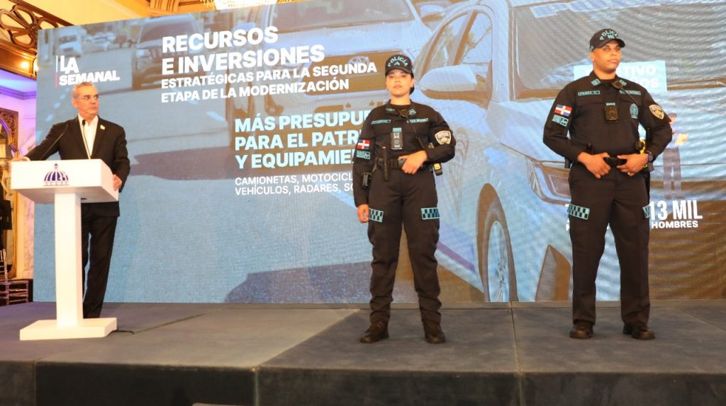 Santo Domingo.- El presidente Luis Abinader presentó este lunes en LA Semanal con la Prensa, la nueva imagen de la Policía Nacional, mostrando el prototipo de nuevos uniformes y anunciando más medidas de modernización en todas las áreas.