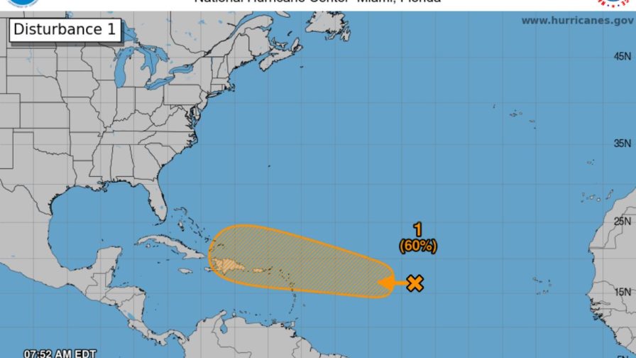 Aunque aún no se puede hablar de alguna proyección o trayectoria, el CNH marca un área naranja que cubre parte de República Dominicana y Puerto Rico. Se recuerda que esa área naranja incluida en el gráfico no es un pronóstico de trayectoria, sino que representa el área potencial de formación.