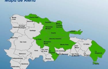 Las provincias en alerta verde son: La Altagracia, La Vega, Duarte, María Trinidad Sánchez, Monseñor Nouel, Hermanas Mirabal, Monte Plata, Puerto Plata, Espaillat, San Cristóbal, Samaná y Sánchez Ramírez.