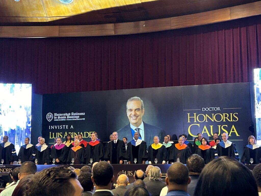 Santo Domingo.- La Universidad Autónoma de Santo Domingo (UASD) llevó a cabo el acto solemne de entrega del título de Doctor Honoris Causa al presidente de la República, Luis Abinader, en una ceremonia celebrada en el emblemático Aula Magna.