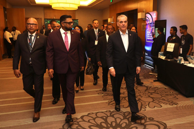 Abinader viajó el lunes a Guyana para participar en la Conferencia Internacional de Energía, tras ser invitado por su homólogo guyanés. Abinader aprovechó la visita para dar seguimiento a los memorandos de entendimiento que firmaron ambos hace casi dos años.