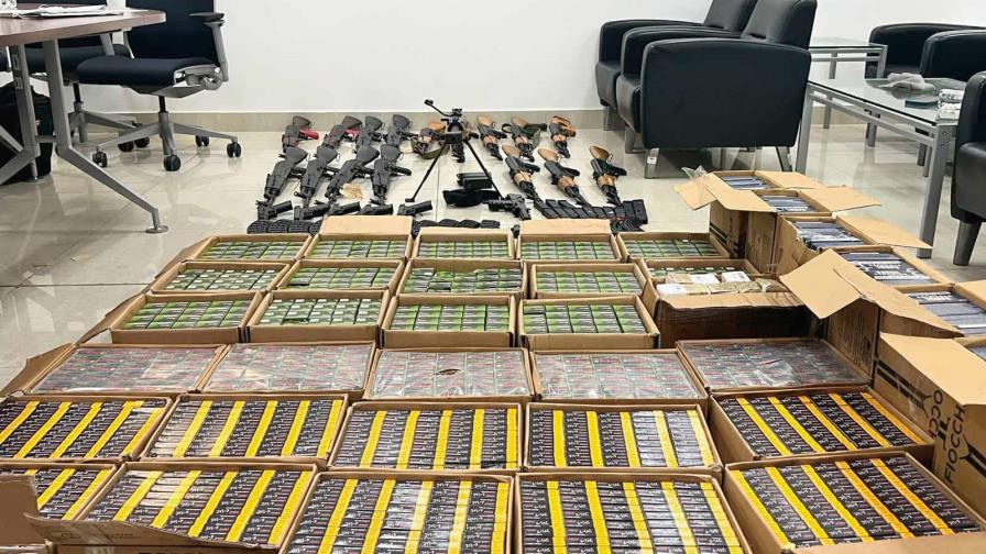 Un fusil Barret calibre 50 milímetros, 17 fusiles calibre 7.62, otro calibre 9, cinco pistolas marca Glock y una ametralladora Uzi, todas armas de guerra, similares a las que ayudaron a esas pandillas criminales a acabar con la vida de más de 5,000 haitianos en los últimos meses.