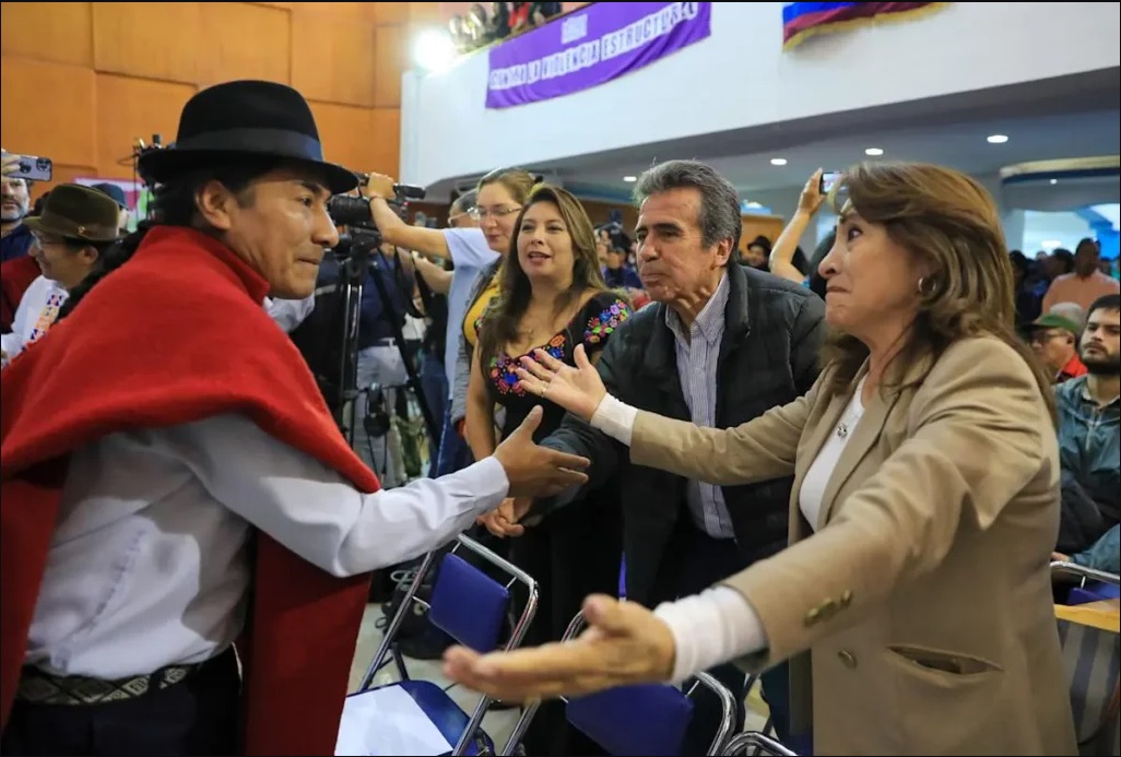 Tras celebrar una asamblea que reunió a organizaciones indígenas, agrupaciones de campesinos, sindicatos de trabajadores y de estudiantes, gremios de distintos sectores, colectivos feministas, defensores de derechos humanos y ecologistas, Iza anunció que pedirán no votar por Noboa, pero advirtió que su apoyo a González no será un cheque en blanco.