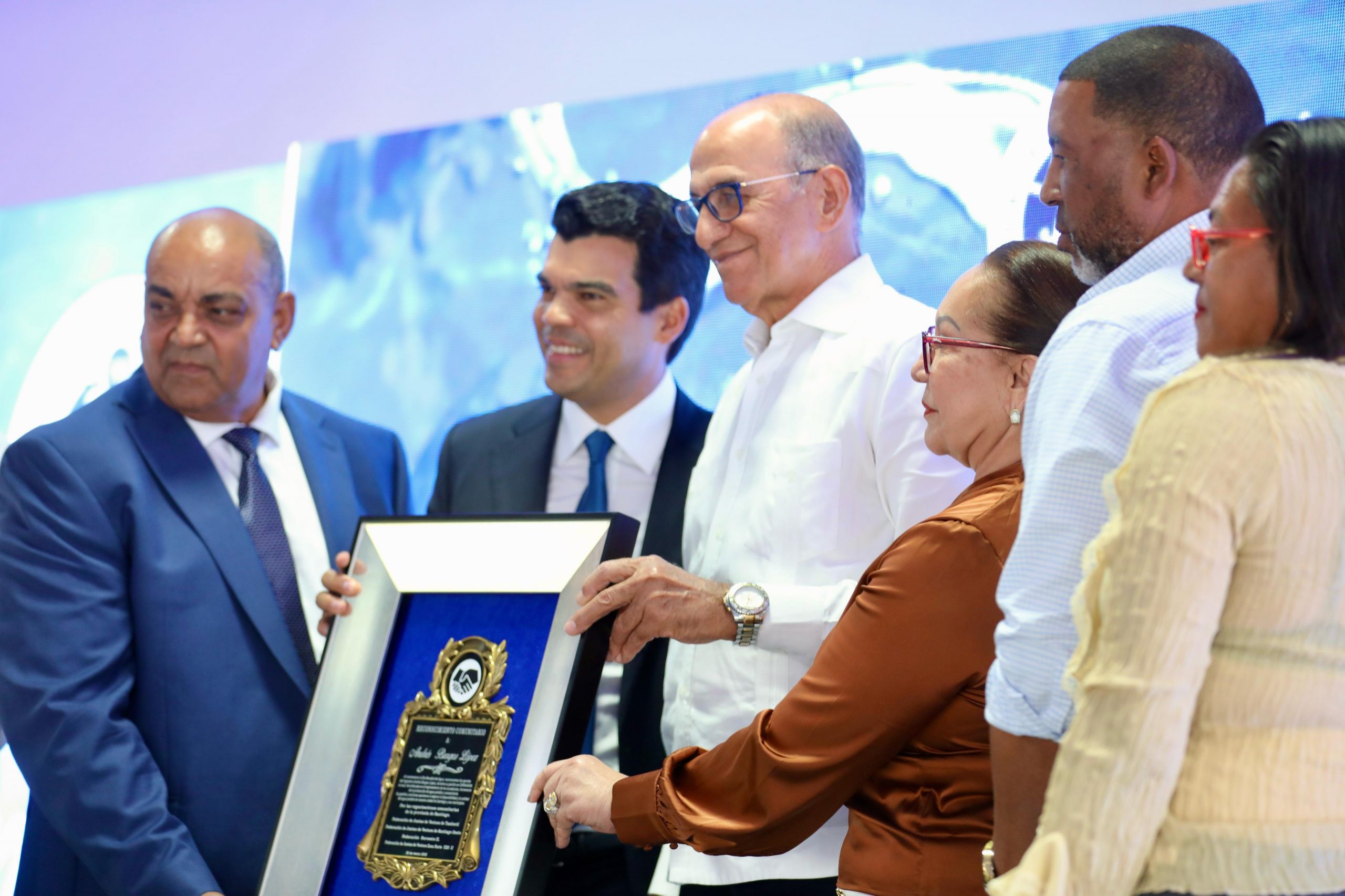 Burgos recibió un segundo reconocimiento de las federaciones de juntas de vecinos de Tamboril, Santiago Oeste, la zona norte y suroeste de la ciudad , por su arduo trabajo para lograr el incremento de la producción de agua potable y el saneamiento de la provincia.
