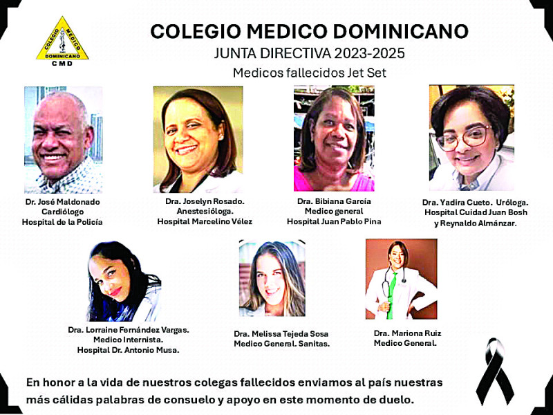 Los médicos, todos afiliados al Colegio Médico Dominicano (CMD), perdieron la vida junto a cientos de personas más al desplomarse el techo del centro de diversión mientras disfrutaban de una fiesta amenizada por el popular merenguero Rubby Pérez, quien también falleció.