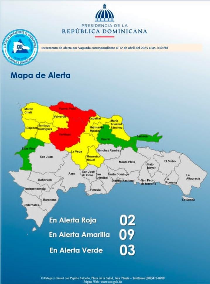 En estos momentos, la provincia de Santiago ha sido colocada en alerta roja, lo que implica un nivel máximo de precaución para las familias que residen en zonas de alto riesgo, propensas a inundaciones, desbordamientos de ríos, cañadas o deslizamientos de tierra.