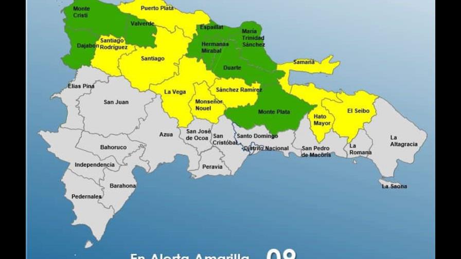 Alerta amarilla: Santiago, Puerto Plata, La Vega, Hato Mayor, Samaná, Monseñor Nouel, Sánchez Ramírez, El Seibo y Duarte.