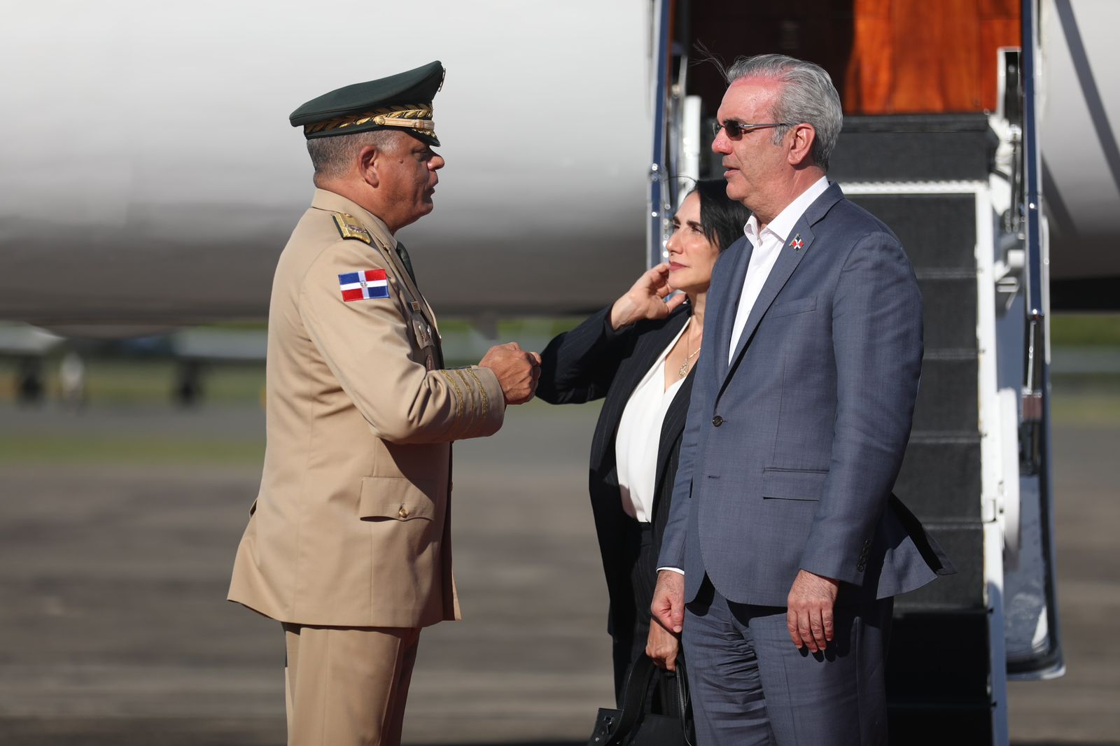 Al mandatario y su comitiva lo recibieron a su llegada a suelo dominicano por la terminal de la Base Aérea de San Isidro, el ministro de Defensa, teniente general Carlos Fernández Onofre; los comandantes de la Fuerza Aérea de República Dominicana, mayor general piloto, Floreal Suárez Martínez y del Primer Regimiento Dominicano de la Guardia Presidencial, general Guillermo Caro Cruz.