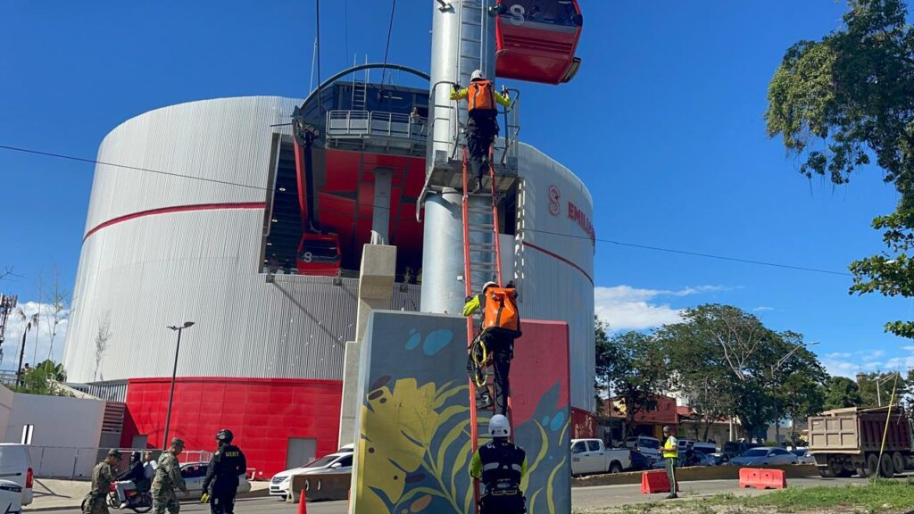 Santiago.– El Sistema Integrado de Transporte realizó este martes un simulacro de evacuación y rescate vertical en la Línea 1 del Teleférico de Santiago, con el objetivo de fortalecer los protocolos de seguridad ante posibles emergencias.