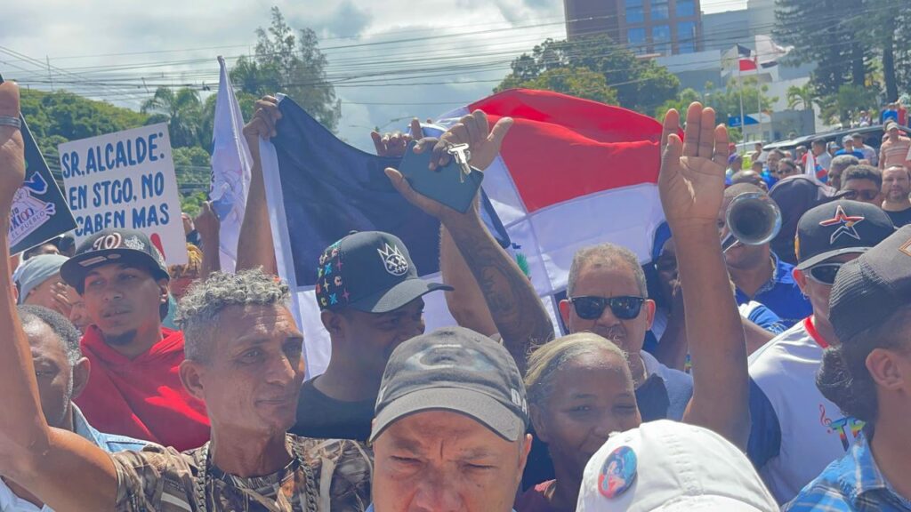 La concentración convocada con motivo de la celebración del “Día Internacional del Trabajo”, se realizó en la avenida Juan Pablo Duarte, frente a la alcaldía de esta ciudad y recorrió varias calles de esta la zona.
