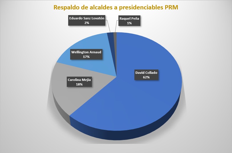 El ministro de Turismo, David Collado, se afianza en la municipalidad con el respaldo mayoritario de 71 alcaldes de los 136 con los que cuenta el Partido Revolucionario Moderno y sus aliados, sacando amplias ventajas a los demás presidenciables de la entidad oficial.