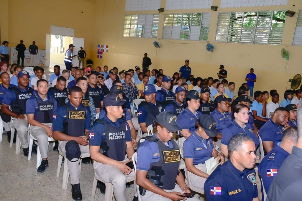 Santiago, R.D. 22 de mayo 2025,- Como parte de los esfuerzos que realiza la policía nacional, La Dirección Policía Antipandillas desarrolló una amplia jornada de trabajos de índole preventivo, iniciando con un acto inaugural desarrollado en La Escuela Emma Balaguer, donde asistió el General Rufino Contreras Ruiz, Director Policía Antipandillas, además el General Juan B. Jiménez Reynoso, Director Regional Cibao Central, Dennis Molina, directora adjunta de la regional de educación de Santiago, Eddy Báez, director distrito municipal Santiago Oeste, el párroco Roberto Escaño, de la iglesia San Lorenzo, Pastor Pablo Uren̈a, del programa niños con una esperanza, Carlos Cesar Álvarez, profesor y comunitarios del lugar, Vimelkis Gil, directora de la escuela Emma Balaguer y demás autoridades del sector.