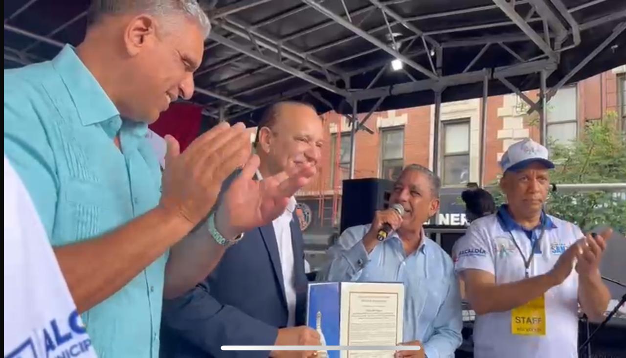 Nueva York, EE.UU. – En un emotivo acto celebrado durante el Festival del Boulevard Juan Pablo Duarte, el alcalde de Santiago de los Caballeros, Ulises Rodríguez, recibió una proclama del Capitolio del Estado de Nueva York, entregada por el congresista federal Adriano Espaillat, en reconocimiento al desarrollo y transformación de la ciudad de Santiago.