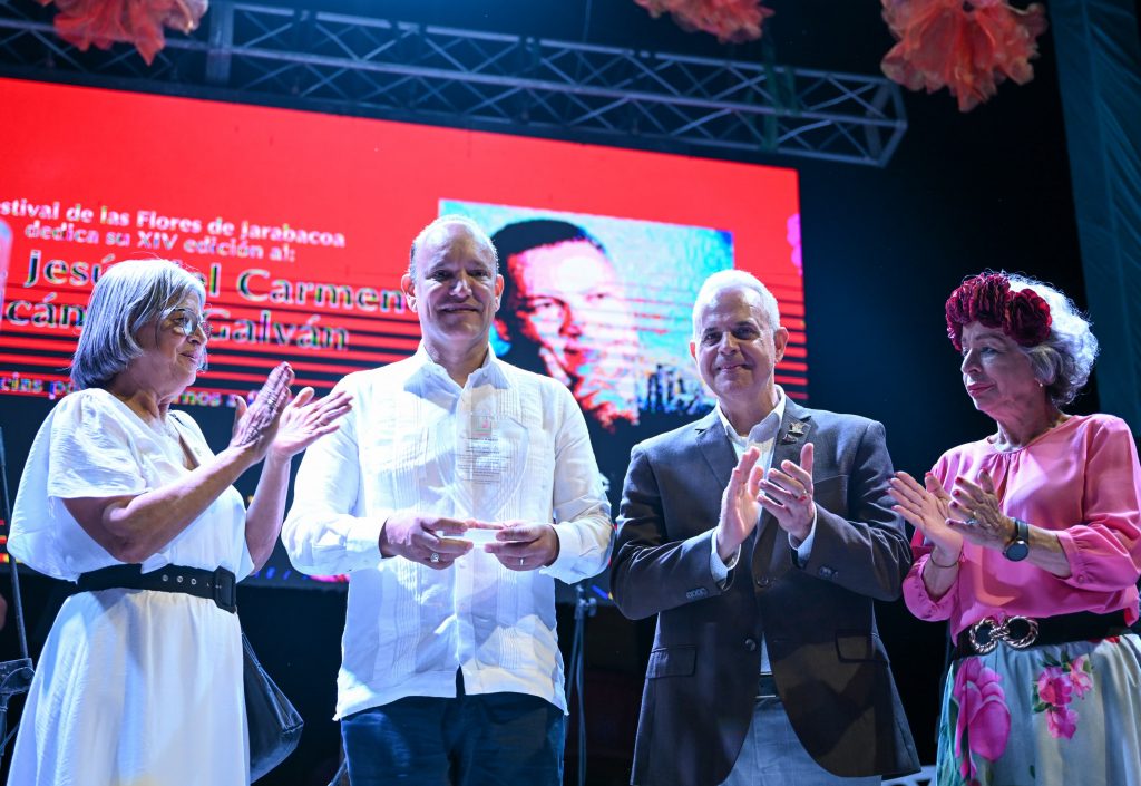 El reconocimiento fue entregado en compañía de la presidenta de la Fundación de las Flores, Mili Pérez, y del alcalde anfitrión, José Lito Abreu, destacando el papel del edil santiaguero como aliado estratégico en la proyección del festival y en la integración regional.