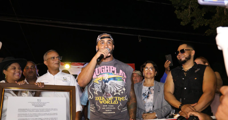 Caramelo, quien se convirtió en el primer dominicano en ganar este reality show, fue recibido por los dajaboneros con abrazos, aplausos y la alegría desbordante de los residentes orgullosos por su logro y de poner la provincia "por todo lo alto".