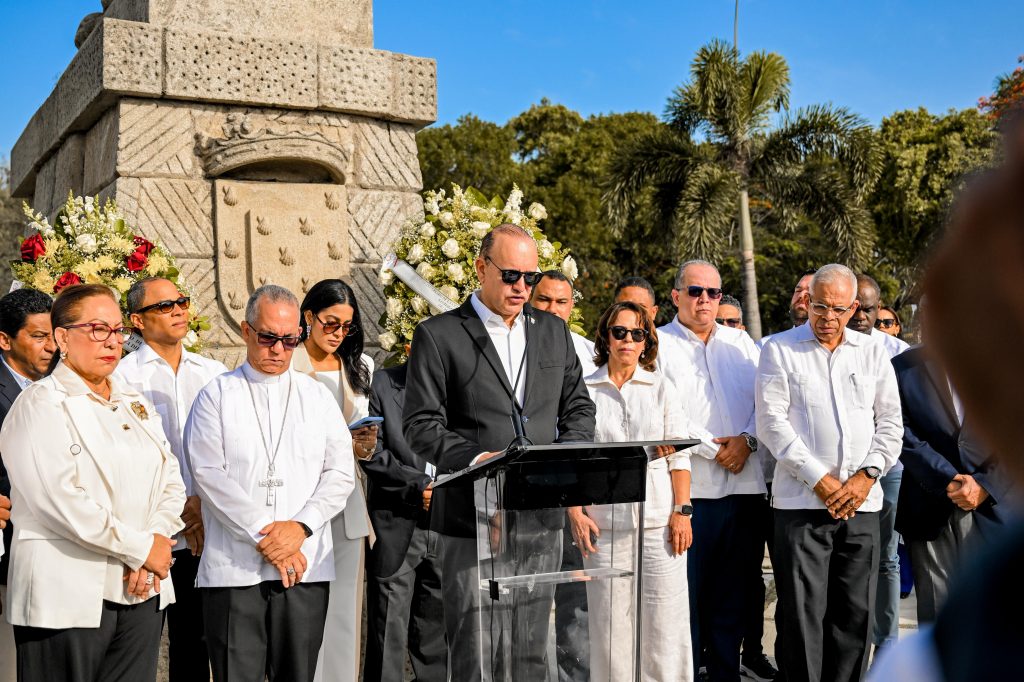 El acto comenzó con el izamiento de las banderas de la República Dominicana, del municipio de Santiago y de España, como símbolo de los profundos lazos históricos y culturales entre ambas naciones. La interpretación de los himnos nacionales estuvo a cargo de la Banda de Música Municipal de esta ciudad y la invocación religiosa fue realizada por Monseñor Héctor Rafael Rodríguez, Arzobispo Metropolitano de la Arquidiócesis de Santiago de los Caballeros.