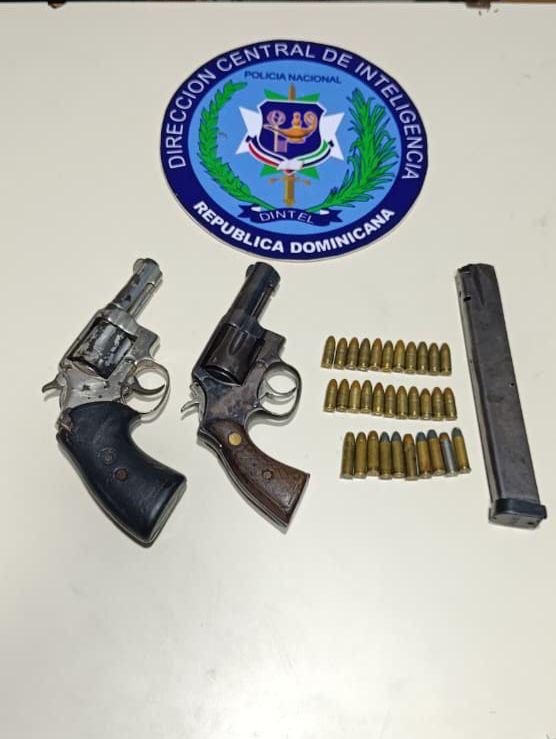 Durante un allanamiento autorizado por la orden judicial No. 2025-AJ0052720, los agentes intervinieron la vivienda de Carlos Ramón Agramonte Almánzar, de 45 años, donde ocuparon dos revólveres calibre .38 —uno marca Smith & Wesson y otro de procedencia ilegible—, ambos sin registro legal. También fueron incautados un cargador con capacidad para 30 cápsulas y otro con 22 municiones calibre 9 mm.