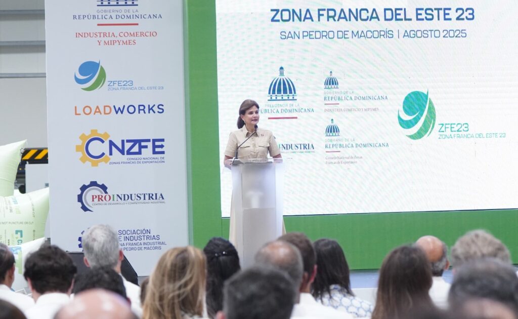 San Pedro de Macorís, R.D. – La vicepresidenta de la República, Raquel Peña, encabezó este viernes la inauguración de dos nuevas naves industriales y el remozamiento de la entrada del Parque de Zona Franca de San Pedro de Macorís , administrado por el Centro de Desarrollo y Competitividad Industrial (Proindustria).