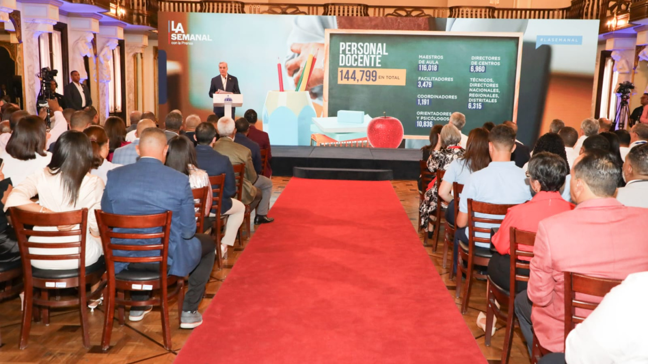 Estas informaciones las ofreció el mandatario durante LA Semanal con la Prensa realizada en el salón Las Cariátides del Palacio Nacional y que llevó por tema “Educación garantizada”.