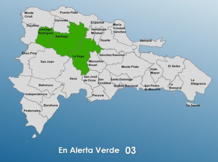 Las demarcaciones que permanecen en alerta son: Santiago Rodríguez, La Vega y Santiago.