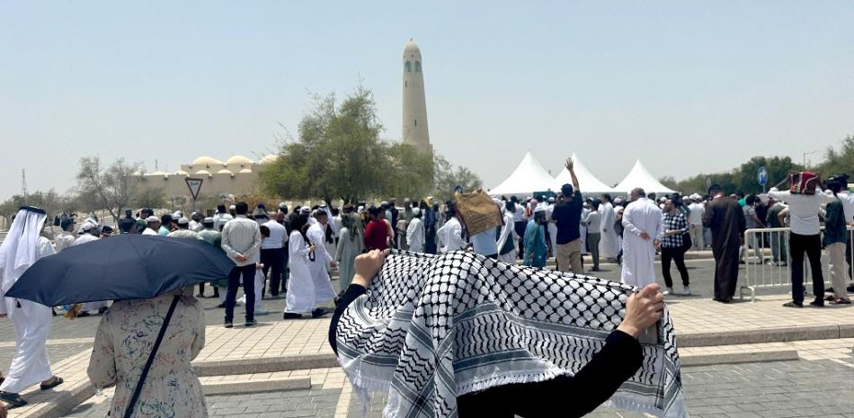 La gente camina hacia la mezquita del imán Muhammad bin Abdul Wahhab en Doha para despedir al líder de Hamás, Ismail Haniyeh, después de su asesinato en Teherán en un ataque atribuido a Israel, el 2 de agosto de 2024. Haniyeh, que residía en Doha junto con otros miembros de la oficina política de Hamás, será enterrado en un cementerio en Lusail, al norte de la capital de Qatar, el más grande del emirato del Golfo.