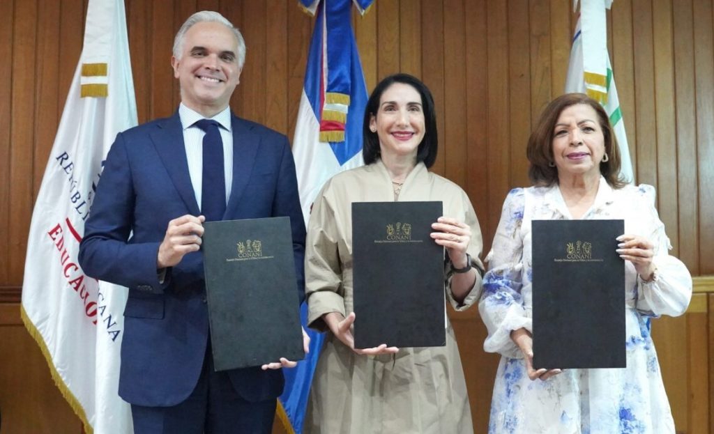 El convenio, rubricado por el ministro de Educación, Luis Miguel De Camps, la presidenta ejecutiva del CONANI, Ligia Jeannette Pérez Peña, y la primera dama Raquel Arbaje como testigo de honor, busca articular esfuerzos institucionales para garantizar el ejercicio de derechos, prevenir riesgos sociales y promover la reinserción educativa de menores fuera del sistema escolar.