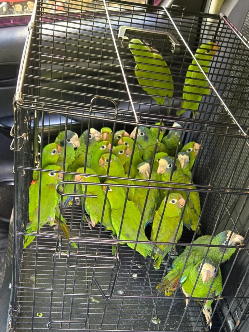 Durante la intervención, fue apresado un ciudadano dominicano mientras transportaba 28 pichones de diferentes especies, entre ellos 18 pericos y 10 cotorras (9 vivas y 1 muerta).