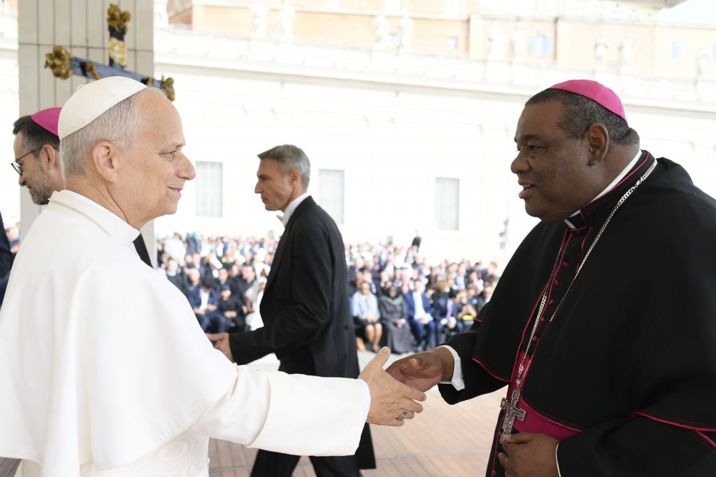 El embajador Suárez, solicitó una audiencia pública que fue acogida para el recibimiento de Manuel Grullón Hernández con la imagen de la virgen que finalmente bendijo el Papa León XIV y a monseñor Castro como obispo de la provincia La Altagracia.