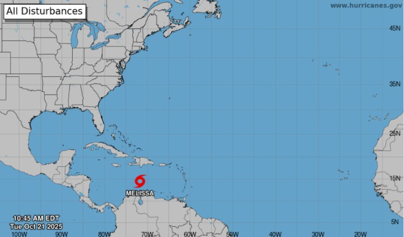 La tormenta tropical Melissa se formó este martes en el mar Caribe y generó avisos por fuertes lluvias y vientos para Haití, República Dominicana y Jamaica, informó el Centro Nacional de Huracanes (NHC, en inglés) de Estados Unidos.