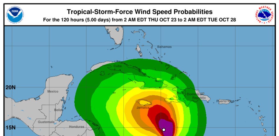 De acuerdo al último boletín del Instituto Dominicano de Meteorología (Indomet) la tormenta Melissa fue localizada aproximadamente a unos 485 kilómetros al suroeste de Puerto Príncipe, en Haití.