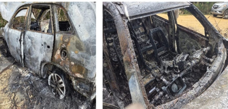 La Policía Nacional (PN) anunció que la yipeta donde se transportaban los individuos que le quitaron la vida a dos personas e hirieron de bala a una señora fue encontrada quemada.