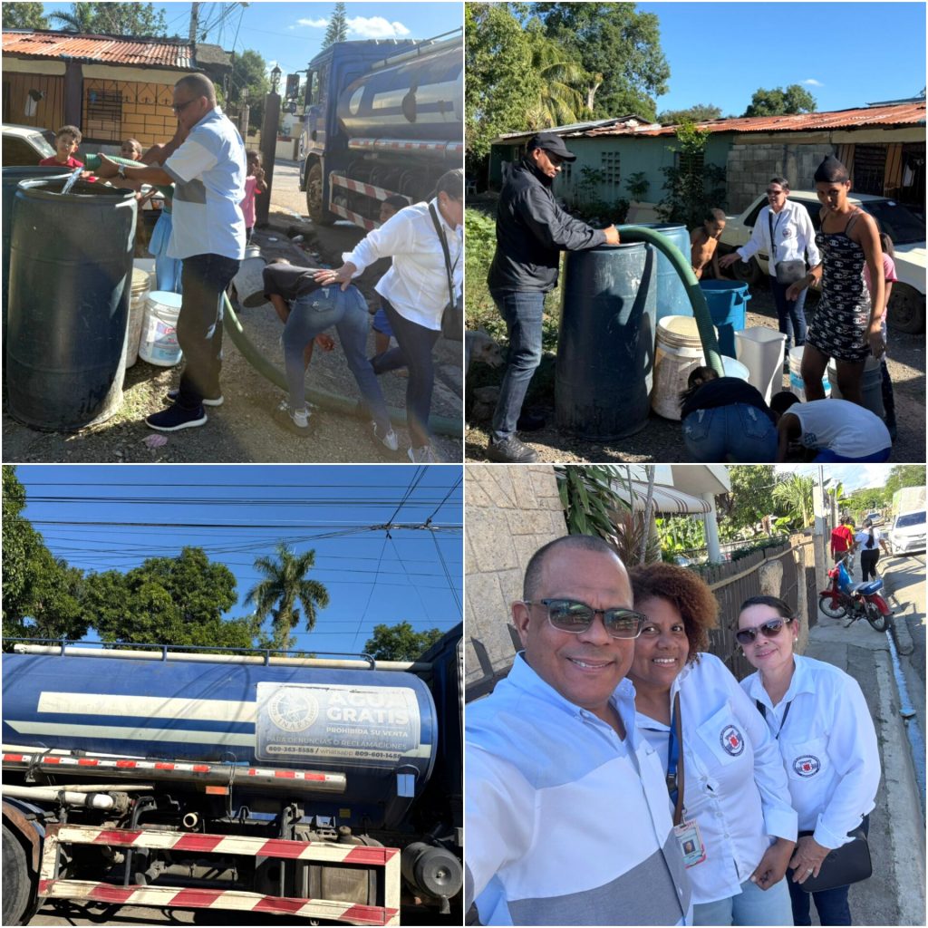Licey al Medio, Santiago.– El encargado del Programa Comunidad Segura, David Polanco, junto a representantes de la Dirección de Gestión Social de la Corporación del Acueducto y Alcantarillado de Santiago (Coraasan), por instrucciones de su director general ingeniero Andrés Cueto, realizaron un operativo de distribución de agua potable en distintos sectores del municipio Licey al Medio, tras la avería que se produjo en la línea de aducción de 60 pulgadas del Acueducto Cibao Central.