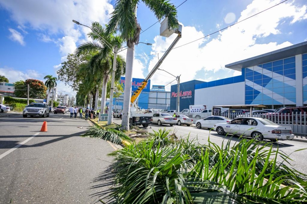 Santiago de los Caballeros.– La Alcaldía de Santiago de los Caballeros realizó este viernes un amplio operativo de poda de palmas en la avenida 27 de Febrero, abarcando el tramo comprendido entre el cementerio 30 de Marzo y el parque E. León Jiménez, como parte de las acciones de mantenimiento y embellecimiento urbano que ejecuta la gestión municipal.