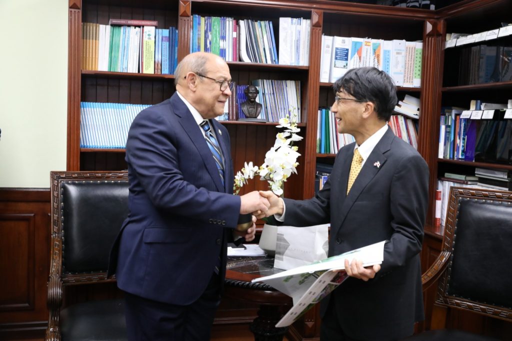 En el marco de su agenda institucional, el ministro Santos Badía también recibió en su despacho la visita de cortesía del embajador de Japón en la República Dominicana, Osamu Hayakawa, con el propósito de continuar fortaleciendo las relaciones de cooperación bilateral entre ambas naciones.