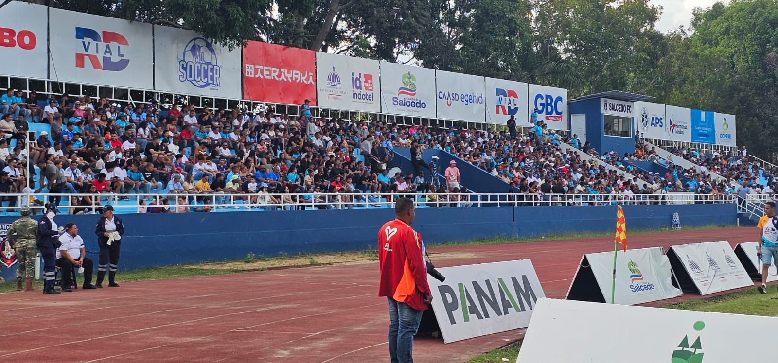 Profesor Santiago Portes realiza saque de honor en partido Salcedo FC vs O&M en la Liguilla de la LDF