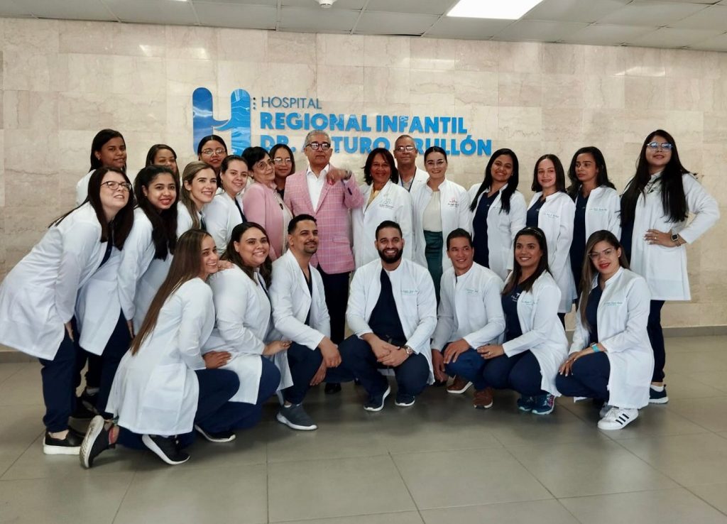 “Estamos recibiendo y entregando la primera bata de pediatra personalizada a 18 nuevos médicos que se gradúan en este hospital” manifestó el gremialista De Mota en el marco de la ceremonia.