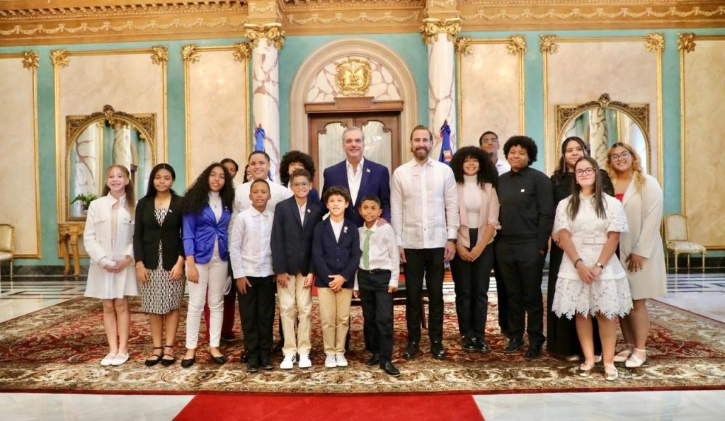 Santo Domingo. – El presidente Luis Abinader recibió la mañana de este jueves a un grupo de 17 estudiantes meritorios hijos de dominicanos residentes en el exterior.