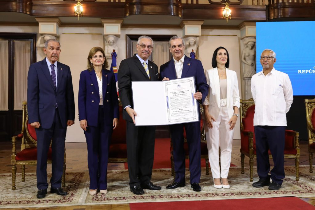 El mandatario junto a la vicepresidenta Raquel Peña; la primera dama Raquel Arbaje y los ministros de Educación, Ángel Hernández y de Educación Superior, Ciencia y Tecnología, Franklin García Fermín, también reconoció a 10 docentes en el ámbito de la Educación Superior, en el Salón Las Cariátides del Palacio Nacional.